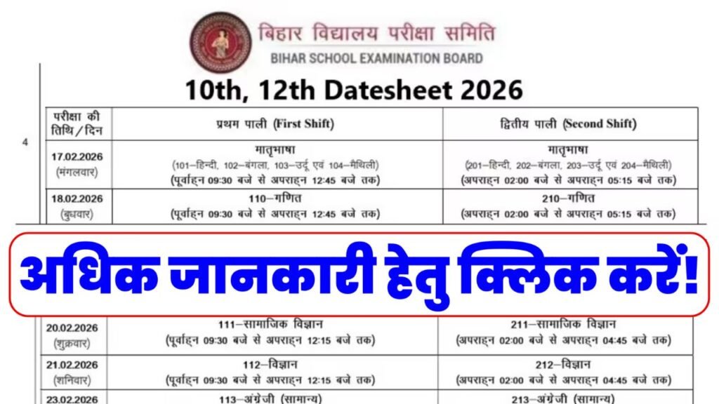 The Bihar School Examination Board (BSEB) has officially released the Bihar Board Class 10 (Matric) Exam Schedule for 2026. This